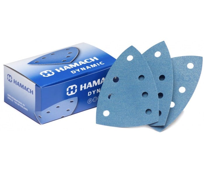 HAMACH Dynamic Delta Schuurpapier is driehoek schuurpapier met 7 gaten die zorgen voor een geweldige stofafzuiging tijdens het schuren. Delta schuurpapier van HAMACH is geschikt voor het schuren van alle oppervlakken. Dit Delta schuurpapier beschikt over een velcro klittenband hechting en aluminium oxidekorrel. Het Delta schuurpapier van HAMACH is leverbaar in de meest voorkomende groftes. Van korrel 60 voor het grove schuurwerk, tot korrel 320 voor het glad en strak afschuren van ieder oppervlak. Korrel 60