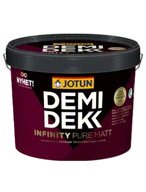 Jotun Infinity Pure Matt is een watergedragen extra matte dekkende houtbescherming (beits) voor buiten die de houtstructuur accentueert. Zowel toepasbaar op hout als op steenachtige ondergronden en is uitermate geschikt voor toepassing op houtrijke gevelelementen zoals bijvoorbeeld dakgootconstructies, dakkapellen, overstekken, rabatdelen, houtskeletbouw en houtstapelbouw. Zeer duurzame, watergedragen, dekkende houtbescherming voor buiten die de houtstructuur accentueert en lange onderhoudsintervallen mogelijk maakt. Extra matte variant van Demidekk Ultimate Täckfärg.