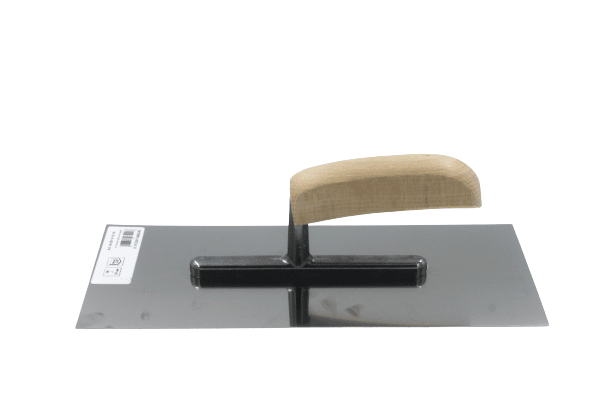 Plakspaan van 13 bij 28 cm met houten handgreep en RVS blad.
